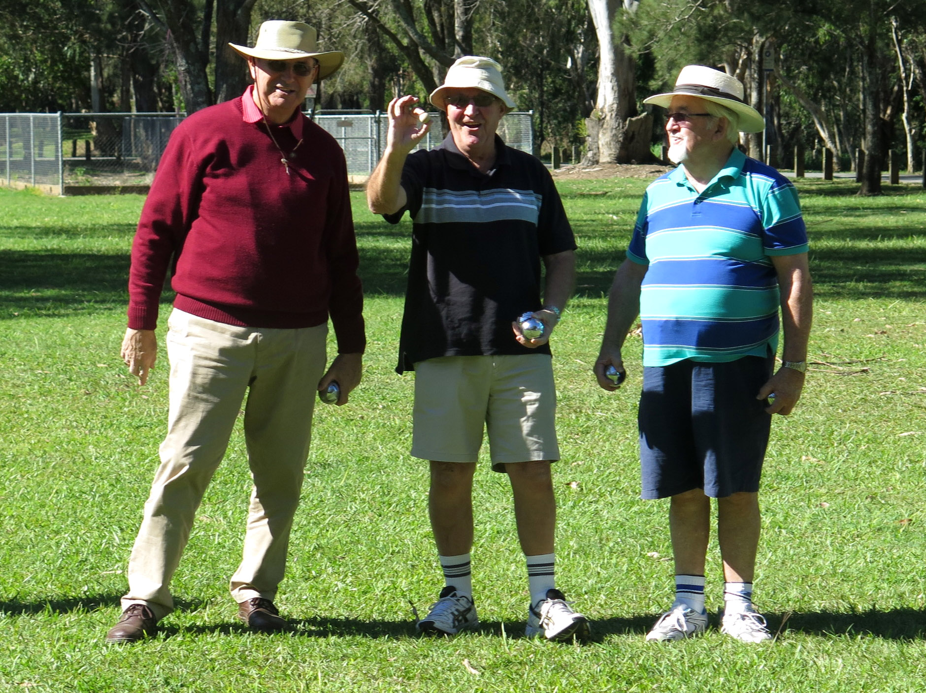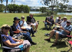 A good contingent of members and wives attended the picnic lunch. It was a beautiful sunny/cool day. We all sat around the tables, full of goodies, while chatting or laughing at various jokes and stories.The Council BBQs were out of action due to the recent floods, so we all brought along sandwiches, cold food and a variety of cakes & cookies. Col C. coordinated the bird watching, while others played petanque.