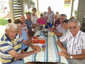 Twenty six of us enjoyed a relaxing BYO Picnic Lunch at Preston Park, Currumbin on 1st October. The circle gradually grew larger as each additional couple arrived on this lovely sunny holiday Monday. The yummy goodies doing the rounds were suitably dealt with during the day. At one stage two dolphins in Currumbin Creek glided past. To top off the day Ngaire also recited two humorous poems which sh had written, The Cake Stall and The Gym.