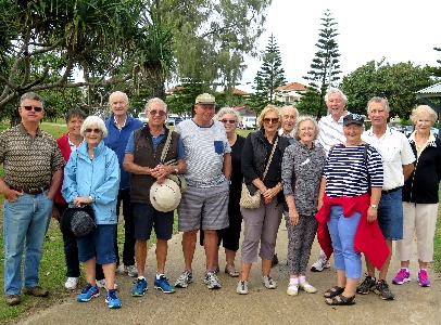 The first outing of the year was great fun and enjoyed by all who attended. Twenty four members and guests boarded the bus at the Burleigh Waters Community Centre and we headed south to Point Danger on the Tweed for morning tea. It was a beautiful day and all were glad of the comfort of air conditioning aboard the coach. After admiring the view and partaking of the tea coffee and biscuits provided, we set off for Byron Bay. All went well until we met the Christmas traffic on the road into the town. To keep us amused, Commander Des asked trivia questions about Australia that no one knew. Prizes were awarded anyway. We finally arrived, half an hour behind schedule, at the light house and spent an hour exploring the spot and checking out the facilities. From there, it was off to lunch at the RSL where we experienced a plentiful feed of our choice at a reasonable cost. On the return journey the driver took us via the old state highway through Murwillumbah, to Tropical Fruit World where many indulged in their special ice cream. We arrived back at the Community Centre at 4.00 where a photo of the group was taken. Des Wicks Organiser.