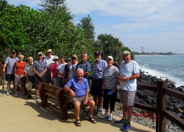 Thirteen members accompanied by Laila Brydon (Grandaughter, of Chris and Leonie), enjoyed a beautiful morning walk from Greenmount Surf Club to Point Danger Lookout, Qld / NSW border. Coffee and chit chat was further enjoyed at the Surf Club.