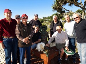 It was great to see Fifteen members and Two (Miller) Dogs meet at Gecko House, Currumbin, for a very enjoyable walk eastward, down to Currumbin Alley and a little beyond. Then back for Coffee & chit chat at the Boat Shed Cafe Coffee Shop. A group photo was taken with the Bronze Lady on the sea front. Another group photo was taken with the Bronze statue of the founder of the old ‘Playroom’ (Memories !!) The weather was fantastic and not a cloud in the sky.