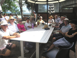 14 members enjoyed the walk along the Currumbin Creek from the car park near Gecko House, over the new bridge and back along the boardwalk, over the old bridge and had coffee at The Boatshed Café, where we were entertained and informed by Rex Dell.