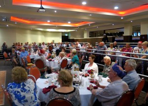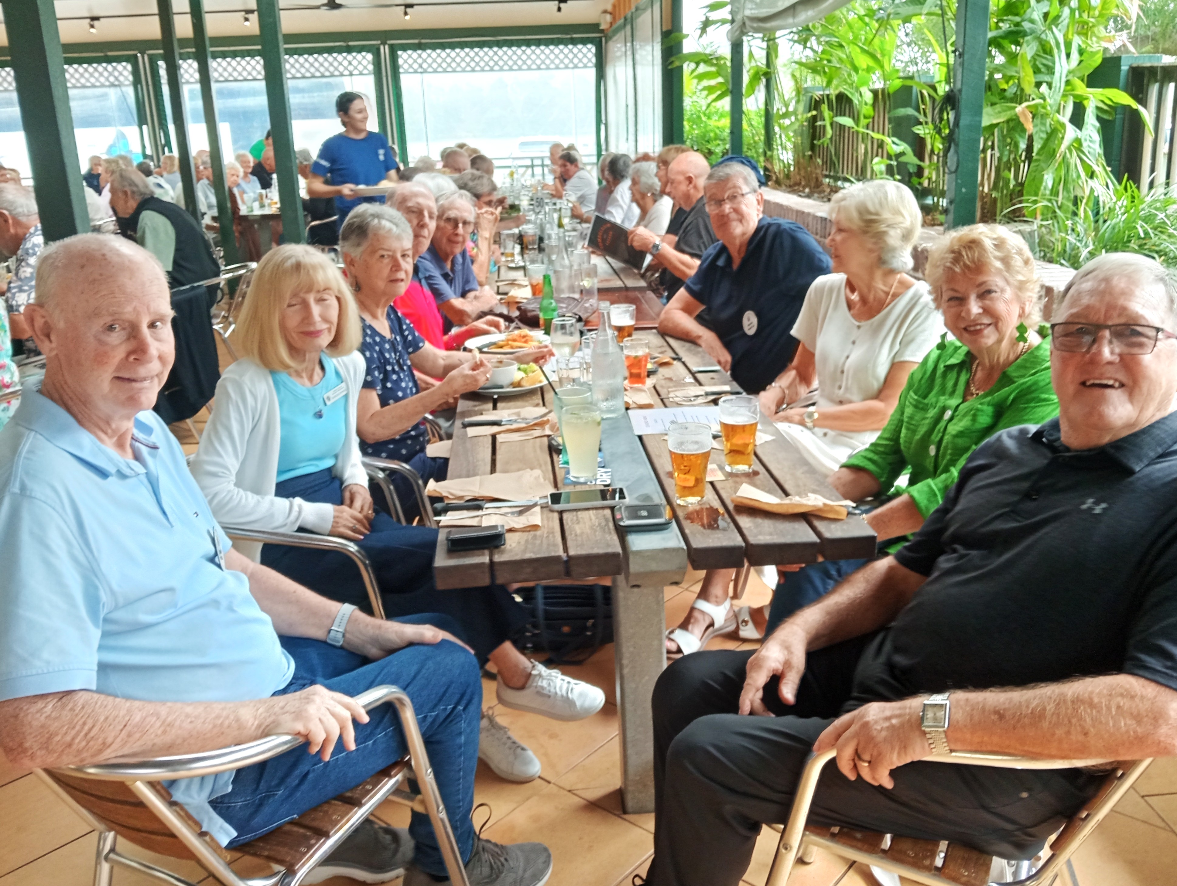Twenty-six members and partners, including former members Robert and Marie McFarlane (aka Slugger & Betty) who are holidaying from Geelong, gathered at the Varsity Lakes Tavern on Monday 12 May for an excellent luncheon. This was instead of the planned picnic in the park at Cascade Gardens which had to be cancelled due to rain.