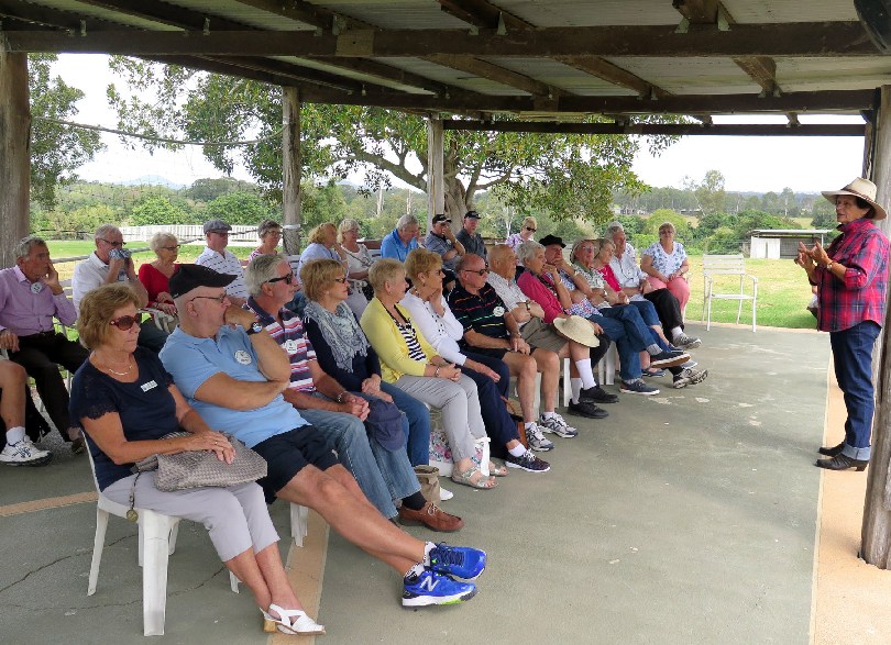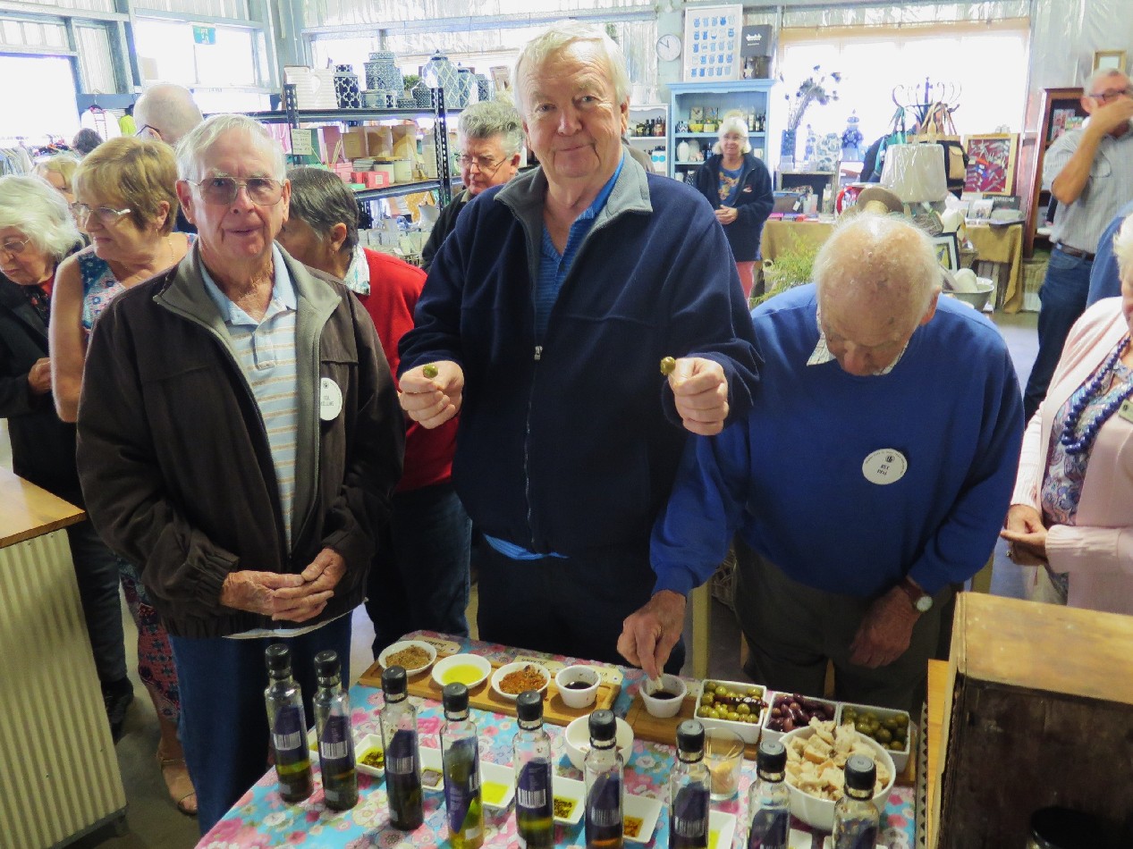 After a delay caused by heavy traffic, fifty seven members left for our day out in the beautiful Scenic Rim country. Our first stop was at The Lions Bicentennial Park at Beaudesert for our tea or coffee, biscuits and anything else you needed to do. Onto the Scenic Rim village of Rathdowney where we had a visit to the Rathdowney Museum and Information Centre, which was very interesting. Our next stop was the Shed Cafe at the Rathlogan Olive Grove. This is situated in the foothills of Mount Barney, and we had a great view of nearby Mt Maroon. After lunch, tastings of olives, balsamic vinegar, dukka, etc., and many purchases of the local products we headed back to Beaudesert. We spent an interesting time at the Beaudesert Information and Arts Centre and again many purchases were made, then we headed for home. The bus trips are becoming very popular again, as we had a full bus, plus four members were on the waiting list.