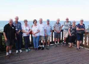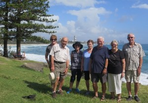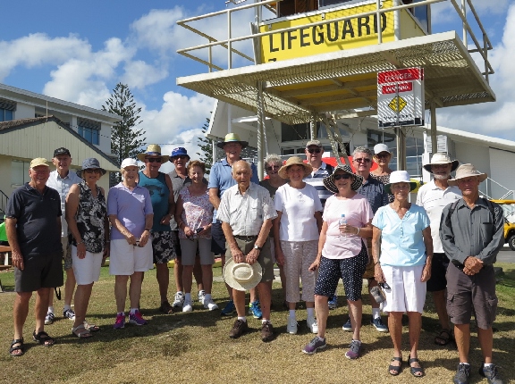The first outing of the year was great fun and enjoyed by all who attended. Twenty four members and guests boarded the bus at the Burleigh Waters Community Centre and we headed south to Point Danger on the Tweed for morning tea. It was a beautiful day and all were glad of the comfort of air conditioning aboard the coach. After admiring the view and partaking of the tea coffee and biscuits provided, we set off for Byron Bay. All went well until we met the Christmas traffic on the road into the town. To keep us amused, Commander Des asked trivia questions about Australia that no one knew. Prizes were awarded anyway. We finally arrived, half an hour behind schedule, at the light house and spent an hour exploring the spot and checking out the facilities. From there, it was off to lunch at the RSL where we experienced a plentiful feed of our choice at a reasonable cost. On the return journey the driver took us via the old state highway through Murwillumbah, to Tropical Fruit World where many indulged in their special ice cream. We arrived back at the Community Centre at 4.00 where a photo of the group was taken. Des Wicks Organiser.