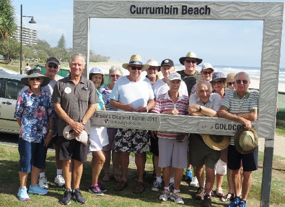 It was great to see Fifteen members and Two (Miller) Dogs meet at Gecko House, Currumbin, for a very enjoyable walk eastward, down to Currumbin Alley and a little beyond. Then back for Coffee & chit chat at the Boat Shed Cafe Coffee Shop. A group photo was taken with the Bronze Lady on the sea front. Another group photo was taken with the Bronze statue of the founder of the old ‘Playroom’ (Memories !!) The weather was fantastic and not a cloud in the sky.