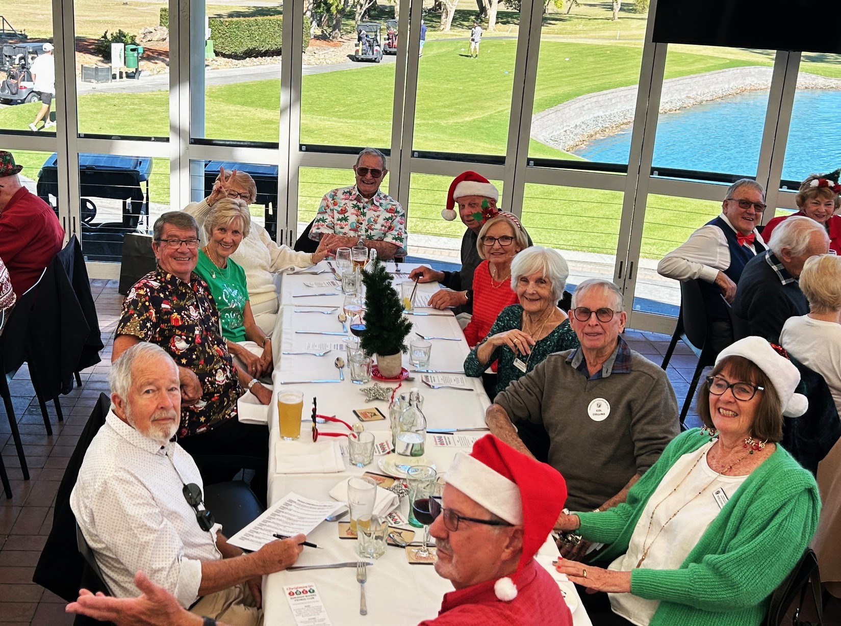 Fifty seven members and partners attended our annual Christmas in July luncheon at Emerald Lakes Golf Club on Monday 14 July. It was great to see the large number of attendees who made the effort to dress up in Christmas attire. Lyn Hugg and Alf Conti were judged to be the best dressed female and male. Lunch was served at 12.15pm and as usual it was delicious. The service by the staff was excellent. Trivia was then held, and the winner was the team lead by Chris Brydon who blitzed the other teams. All who attended agreed that the day was a great success.